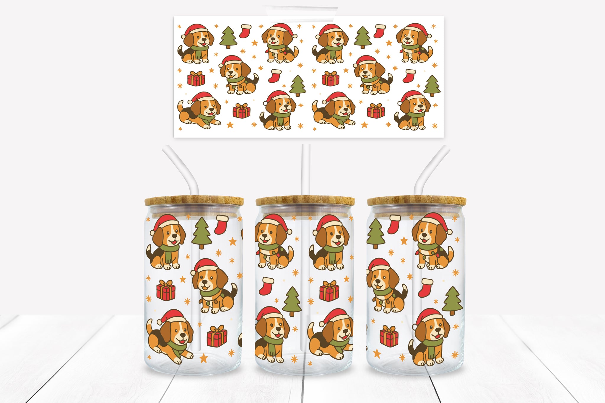 UVD 174 Christmas Beagle - 16 oz Glass Cup Wrap