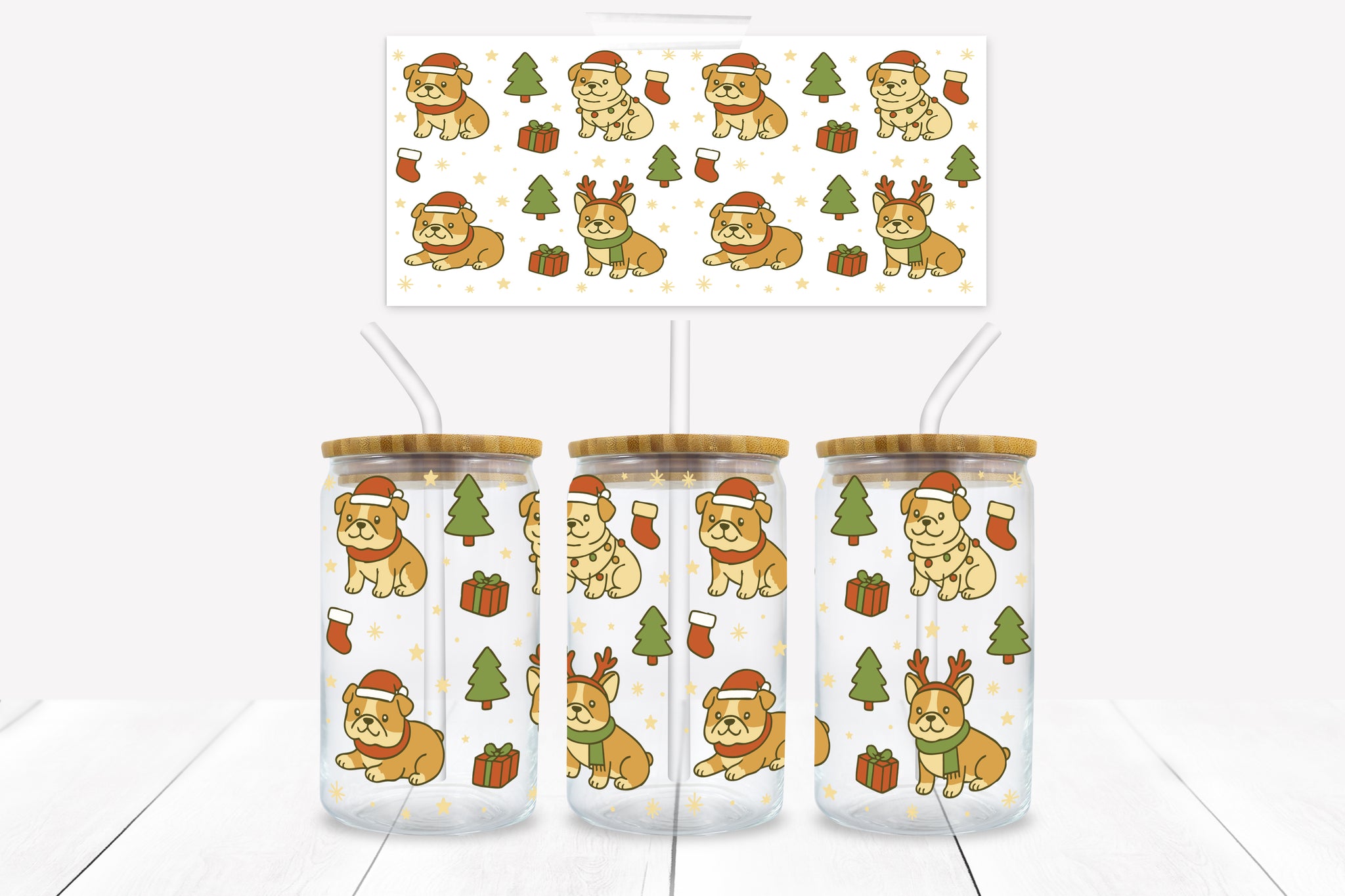 UVD 175 Christmas Bulldog - 16 oz Glass Cup Wrap
