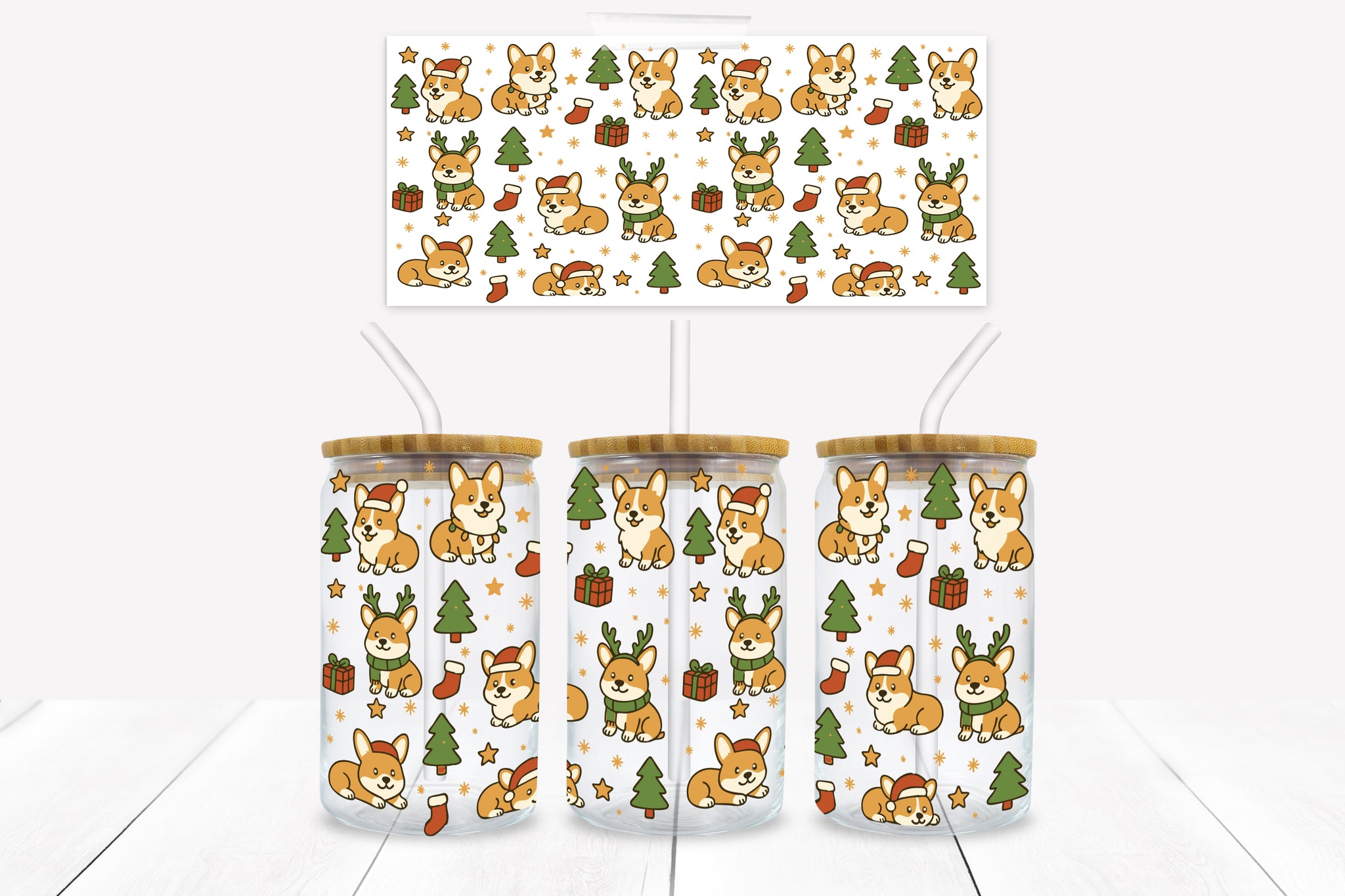 UVD 177 Christmas Corgi - 16 oz Glass Cup Wrap