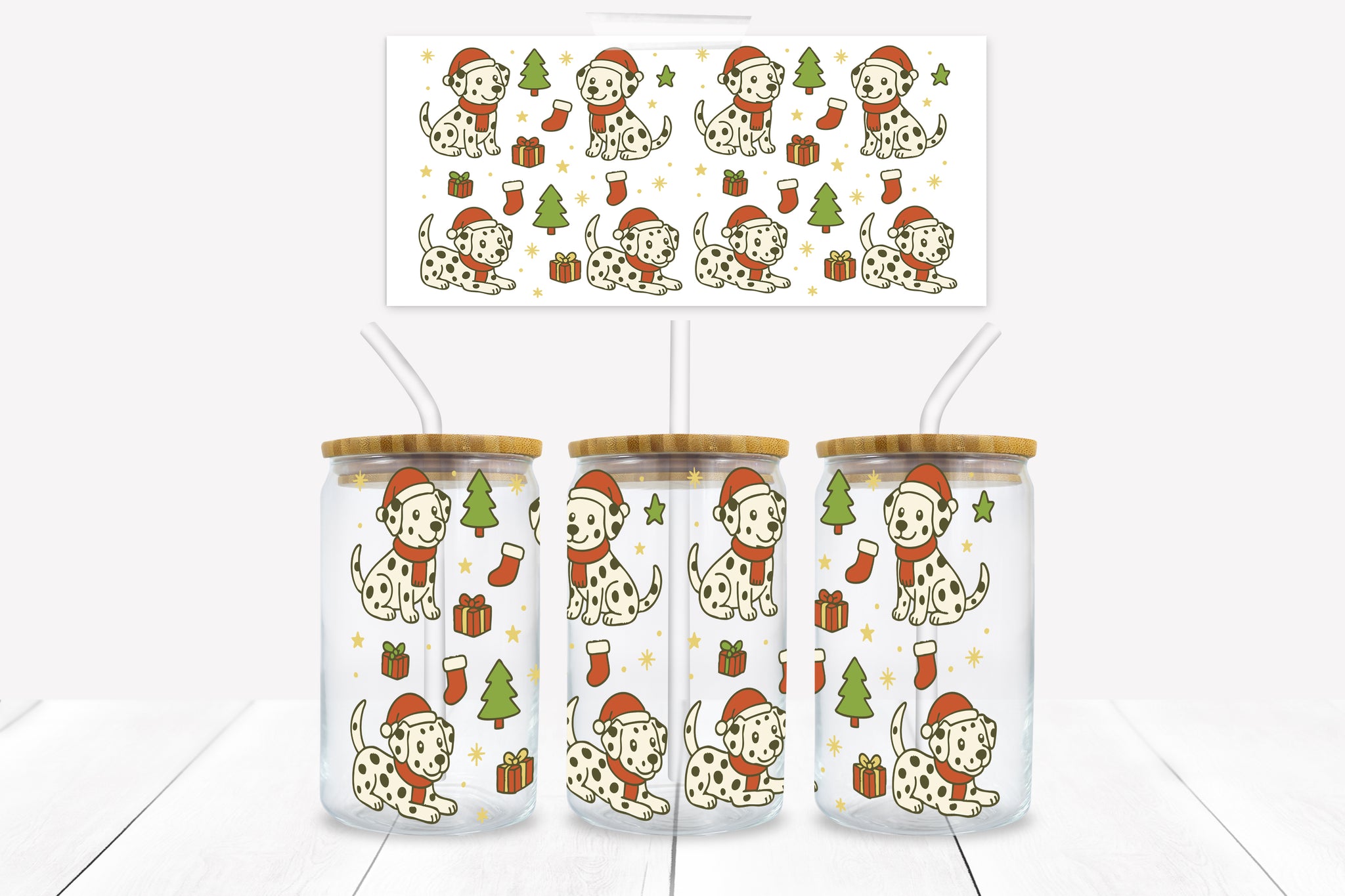 UVD 179 Christmas Dalmatian - 16 oz Glass Cup Wrap