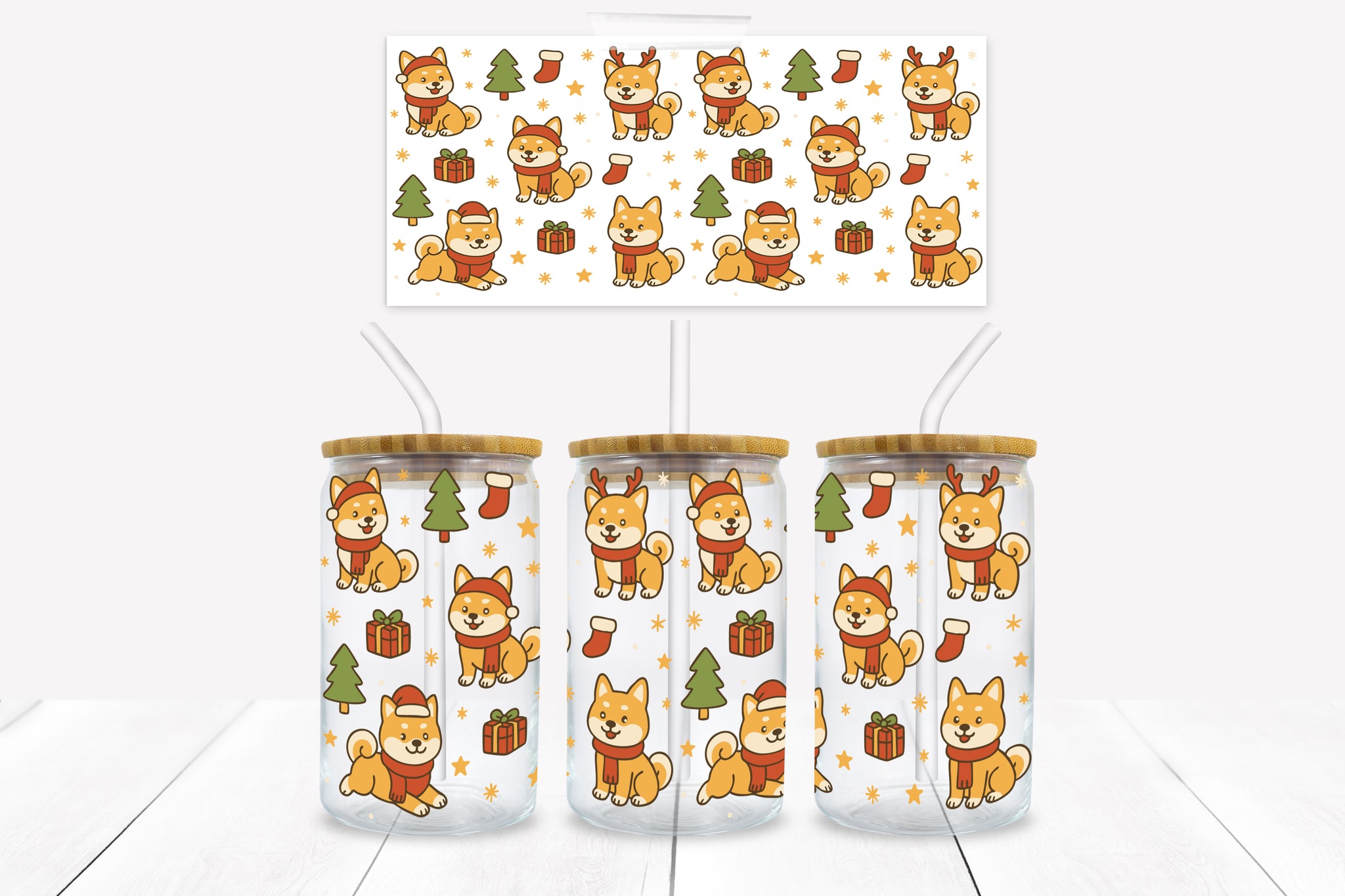 UVD 183 Christmas Shiba Inu - 16 oz Glass Cup Wrap