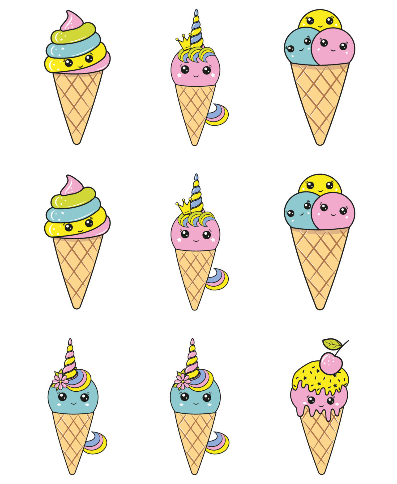 UVD 96 Kawaii Ice Cream - Premium UV Decal Pack - Set of 9 High-Quality Designs